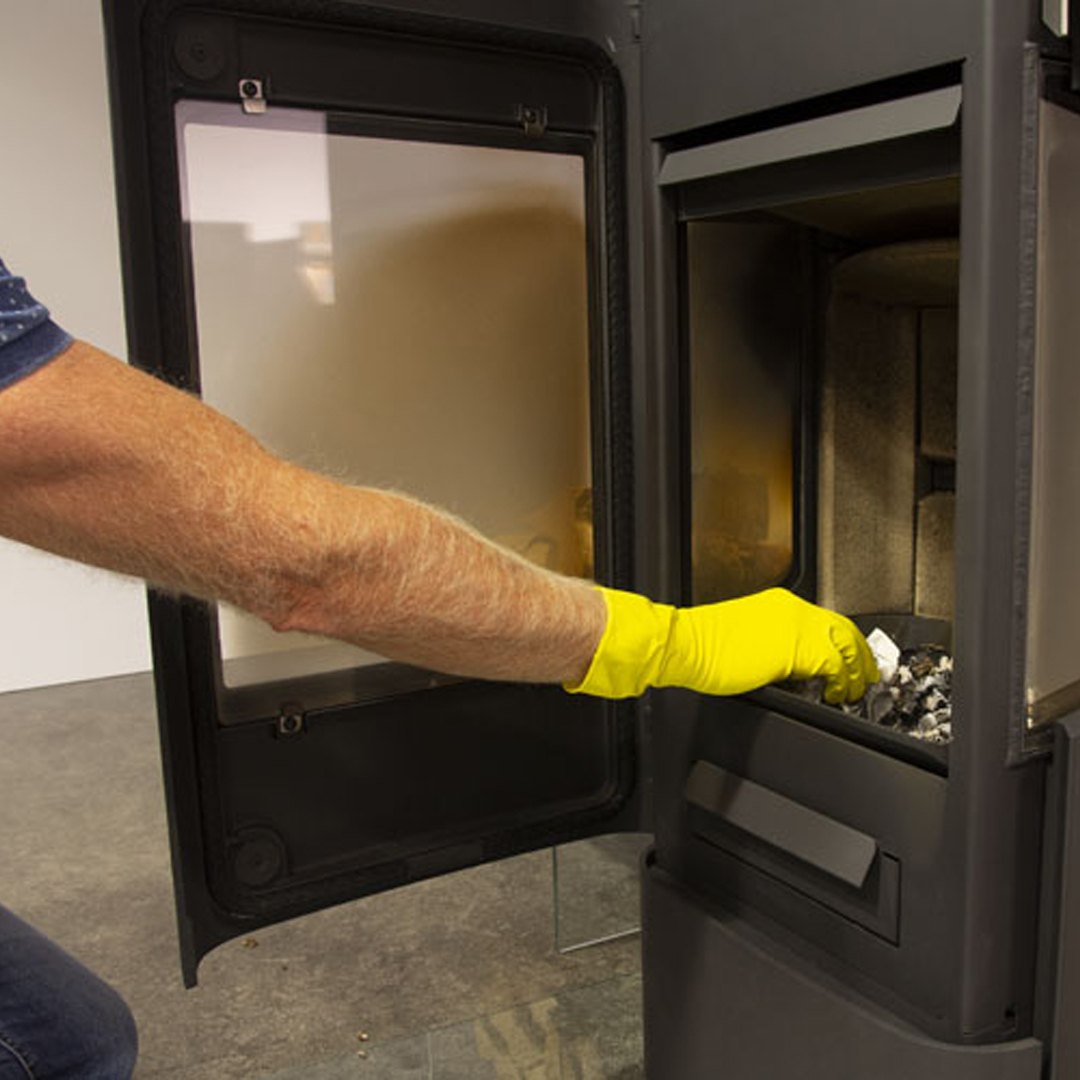 Använd gärna en askdammsugare när du gör rent inne i och utanpå kaminen eller braskaminen. En vanlig dammsugare kan släppa ut sot i rummet och det kan också medföra en brandrisk om det fortfarande glöder i askan.