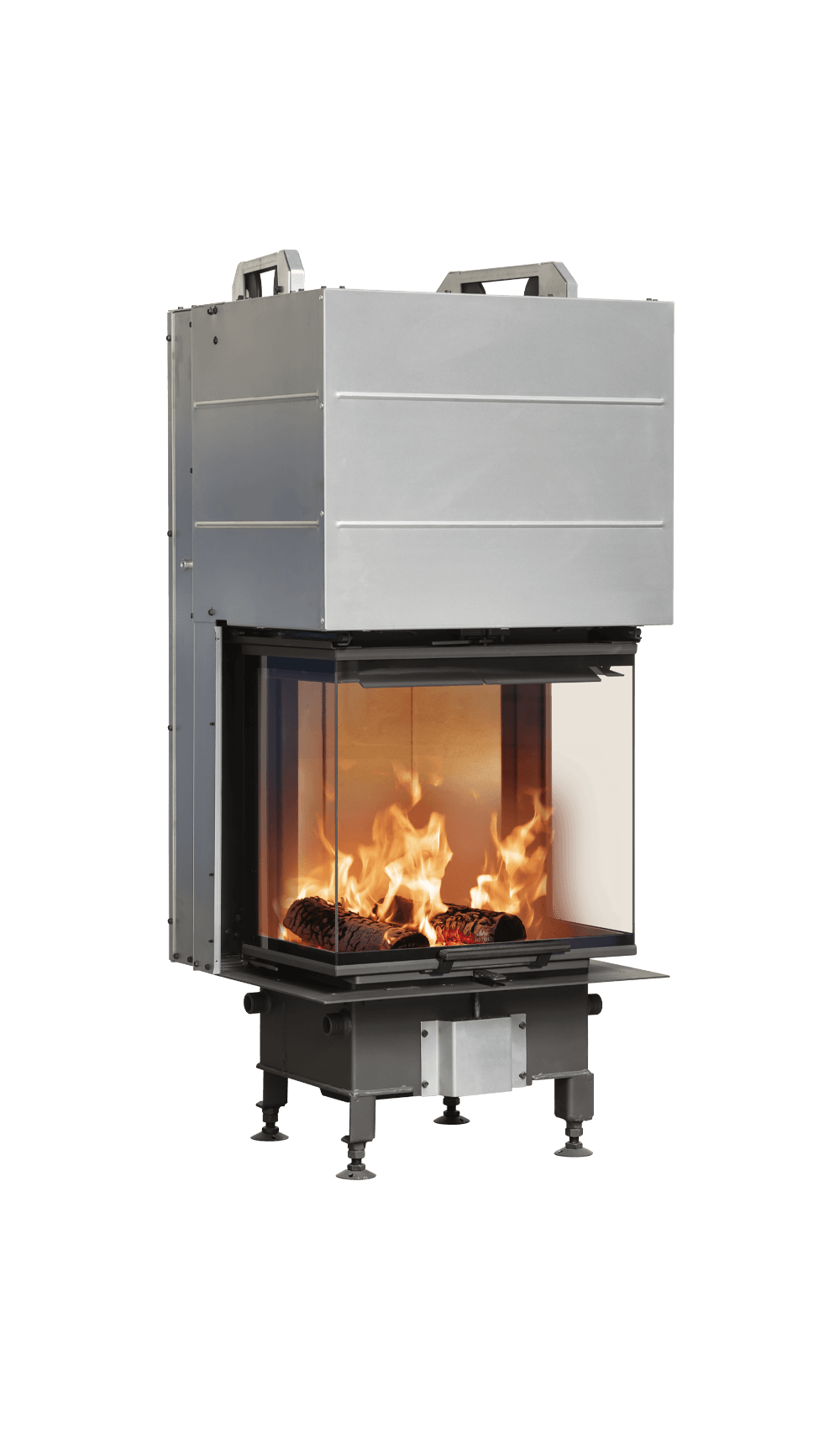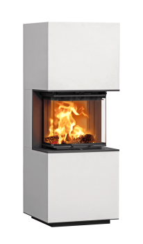 Insats med tre glas som ger fin insyn över lågorna oavsett var du befinner dig i rummet. Insatsen passar även för mindre ytor och rum och fungerar bra i små hus eller lägenheter. Luckan är självstängande med höj- och sänkbar funktion, vilket underlättar när du ska lägga in ved samtidigt som den är säker att använda. Den här stora insatsen gör det enkelt att skapa ett blickfång i rummet. Och det finns många möjligheter att ge den ett personligt utseendet. De sömlösa övergångarna ger en fantastisk insyn över lågorna.