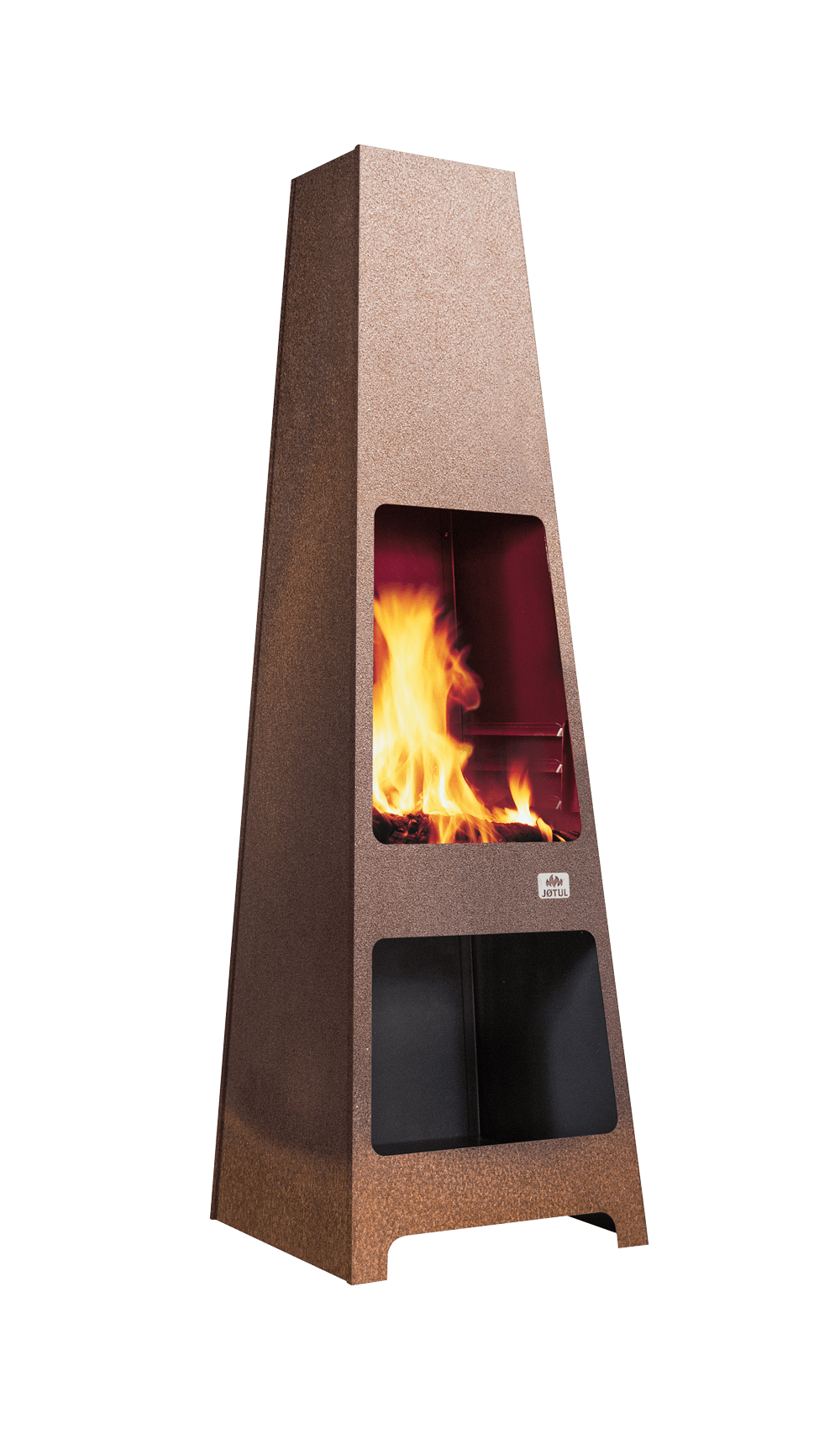 Utekaminen som skapar en stämningsfull och mysig atmosfär som får dig att dröja kvar om kvällarna några extra sköna timmar. Jøtul Loke ger dig närheten till flammorna i den höga, generöst tilltagna eldstaden - en säker eldstad som kan stå utomhus under alla årstider. Utekaminen kan användas enbart för trivsel och värme, eller som grill. Med en underlagsplåt (tillval) kan den stå på altandäcket utan att det tar skada. Jøtul Loke klarar att stå ute året om och finns i cortenstål som ger en väderbeständig, rustik och rostig ytbeläggning.